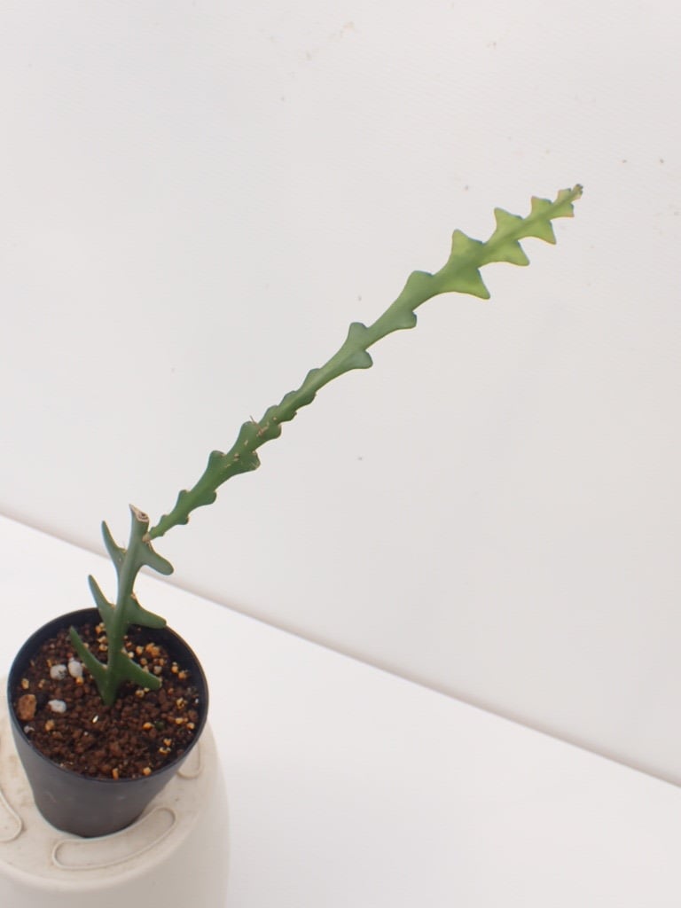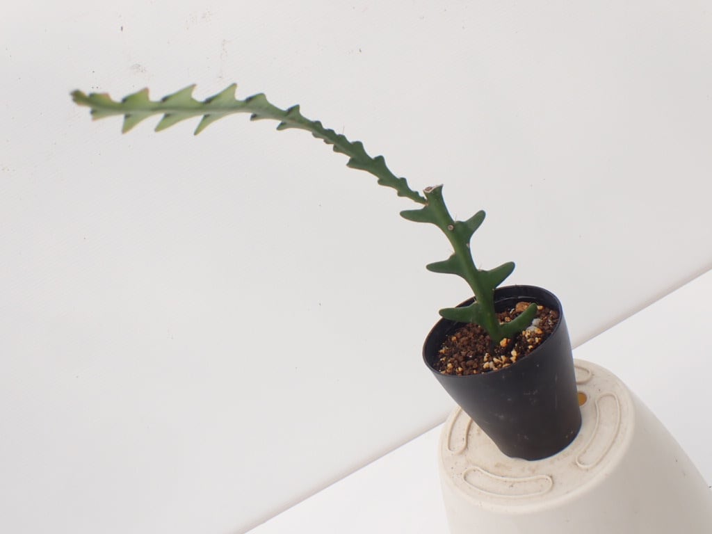花は有香の一夜花で非常に美しい赤系統の花を晩春から初夏に咲かせますが、恐らく冬の温度の関係で開花は難しく、観葉植物的に姿形を楽しむ品種です。