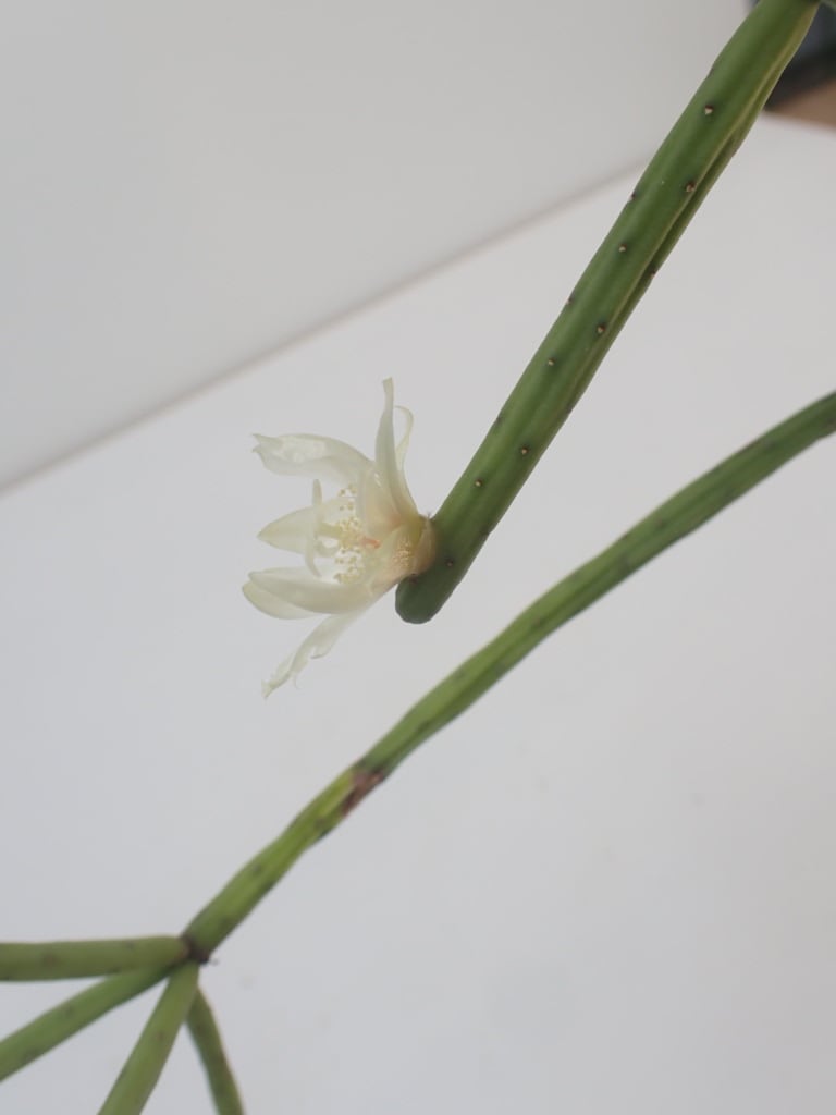 糸状の枝を持つリプサリス類の中で8mm程度の太い枝を持ち、枝を枝垂れさせながら分岐していきます。