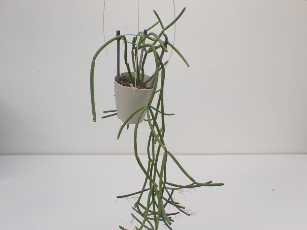 11/10更新 リプサリス メガランサ Rhipsalis megalantha 和名、大葦です。 糸状の枝を持つリプサリス類の中で8mm程度の太い枝を持ち、枝を枝垂れさせながら分岐していきます。 また、リプサリス類の中では大きな、花径3cm程度のクリーム色の花を咲かせますが、その花にはリプサリス類には珍しく芳香があります。