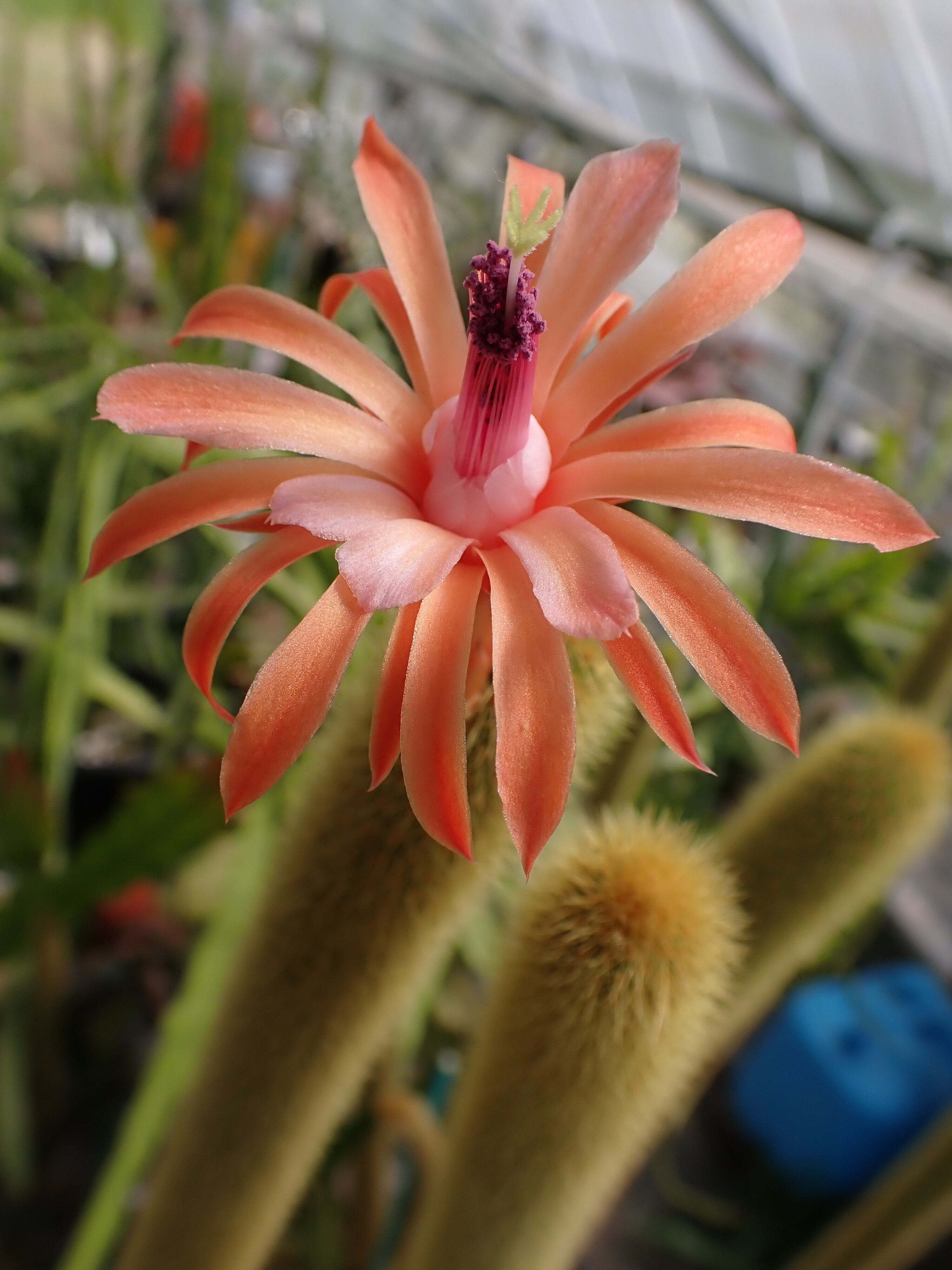 紺色の雄蕊を持つオレンジ色の花を初夏~初冬に咲かせます。