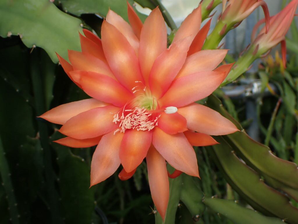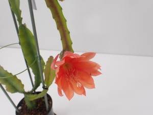開花は容易であり、花は花径12cm~14cm程度で全体がオレンジ色、状態が良いと中心に黄色の線が入る花弁です。